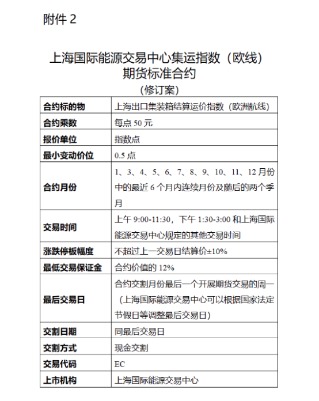 据上期所官网1月16日消息,上海国际能源交易中心发布关于《上海国际能源交易中心集运指数(欧线)期货标准合约》(修订案)的公告,内容为: 《上海国际能源交易中心集运指数(欧线)期货标准合约》(修订案)经上海国际能源交易中心董事会审议通过,并已报告中国证监会,现予以发布。合约月份的调整自2026年2月10日(周二)起实施。最小变动价位的调整自2026年5月11日(周一)起实施。